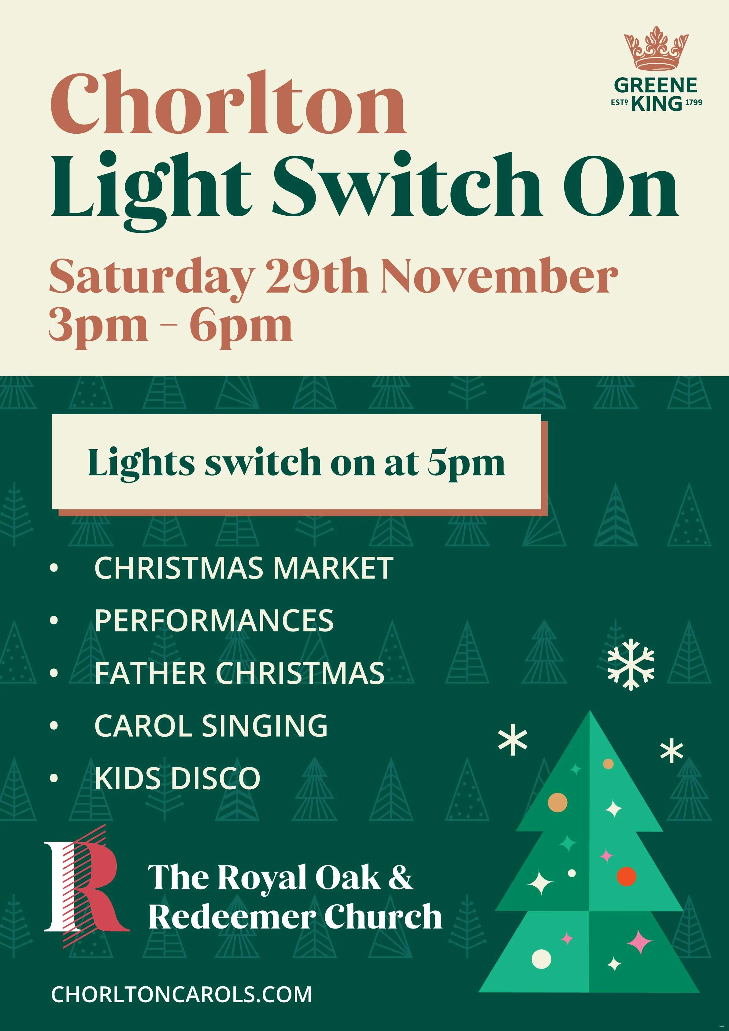 Join the annual celebration as we light up the Four Banks and the Christmas tree in Chorlton. This is a big event and we have loads going on: